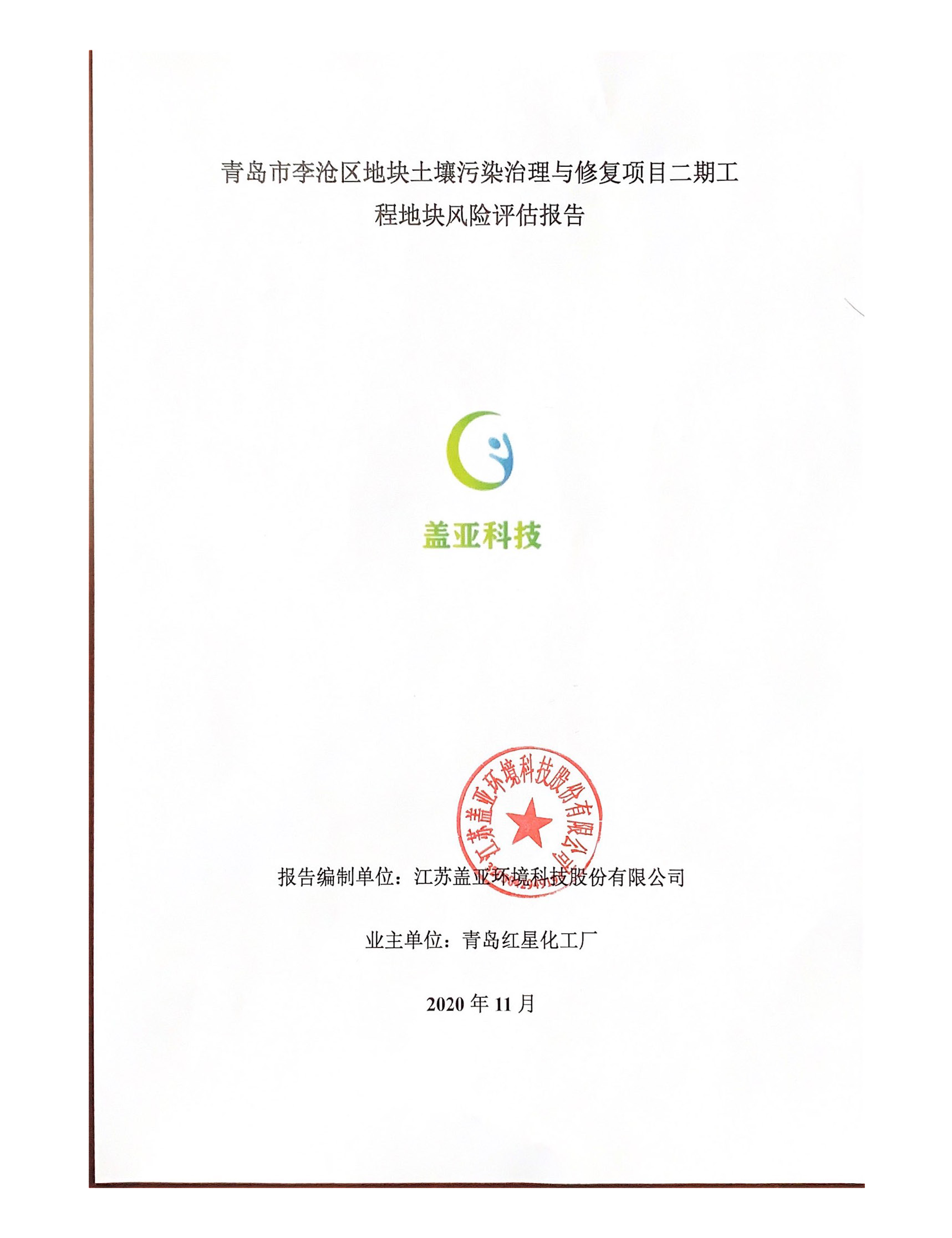 【概要描述】 青島市李滄區地(di)塊土壤治理(li)與修復(fu)項目二期工程地(di)塊風險評(ping)估報告